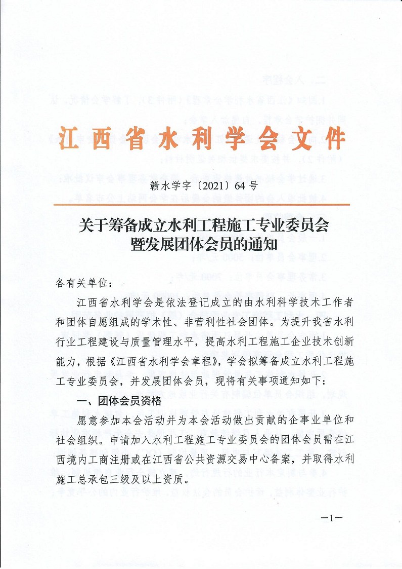 关于筹备成立水利工程施工专业委员会暨发展团体会员的通知