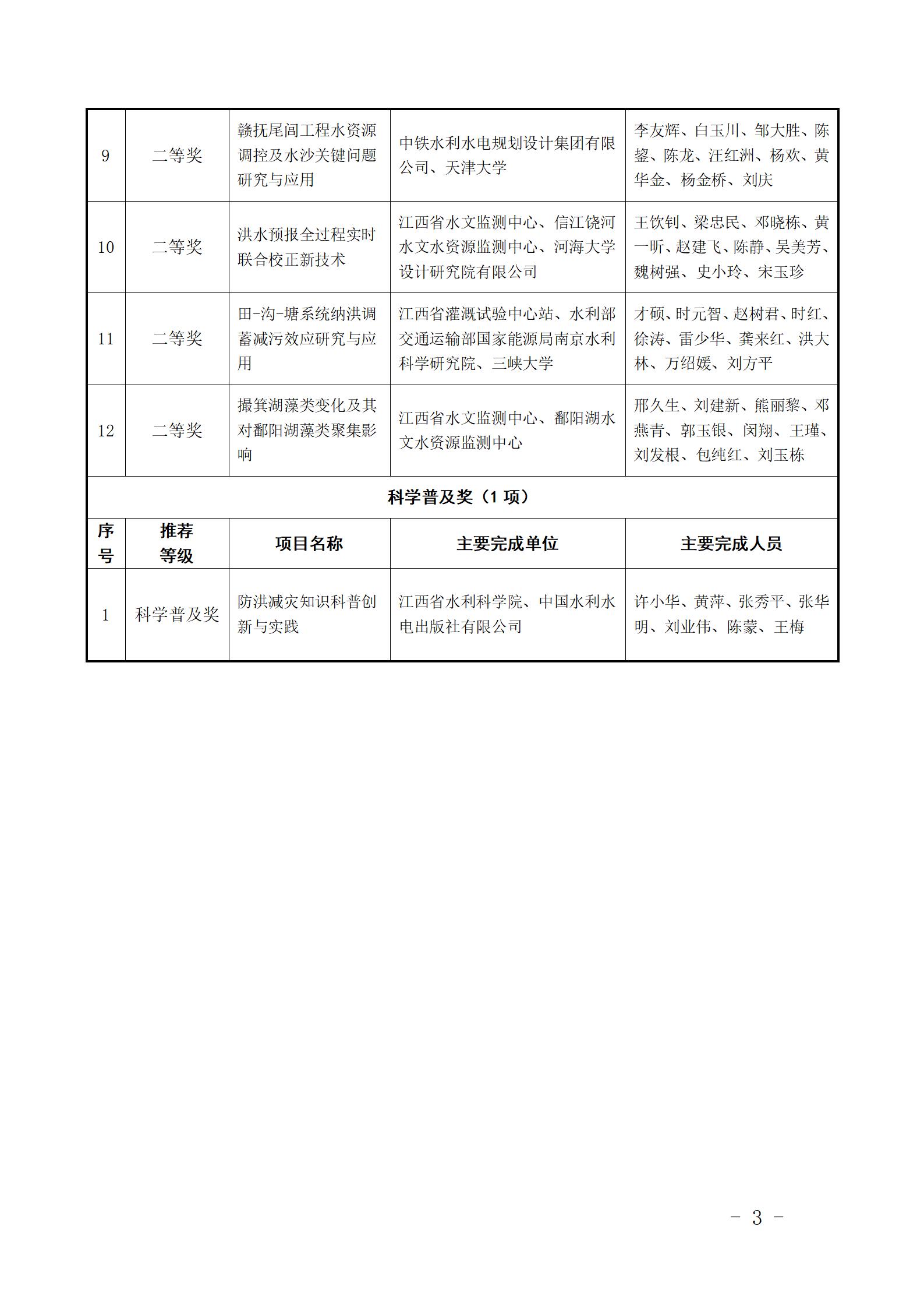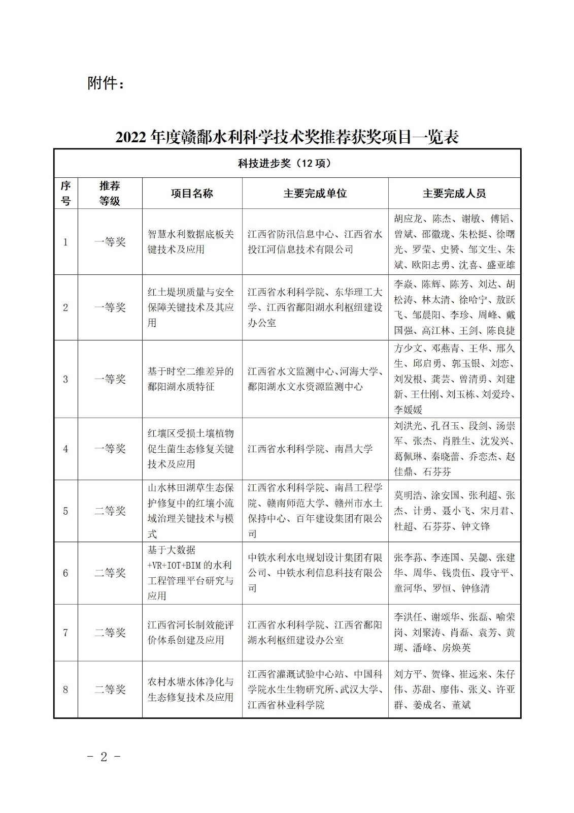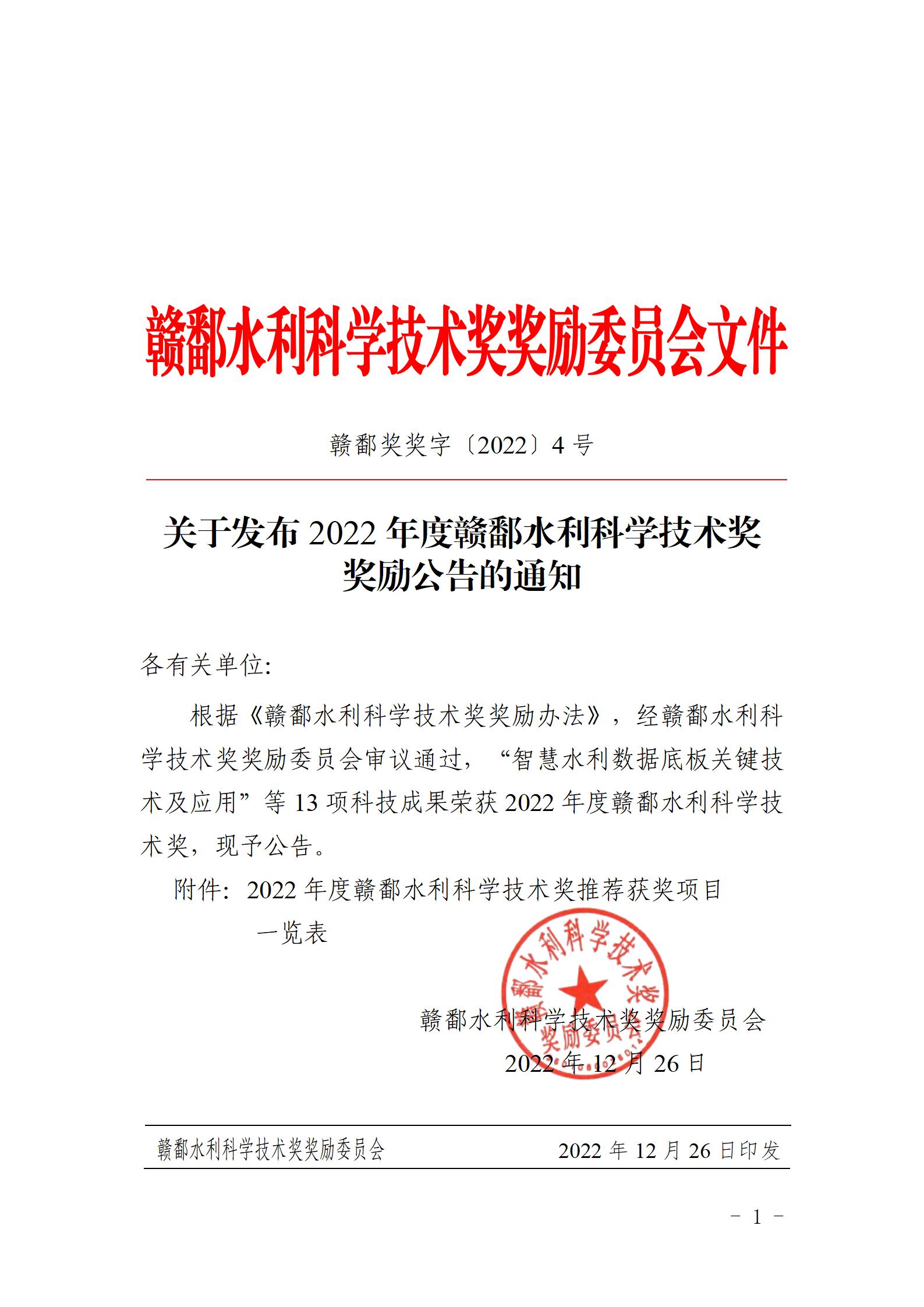 关于发布2022年度赣鄱水利科学技术奖奖励公告的通知